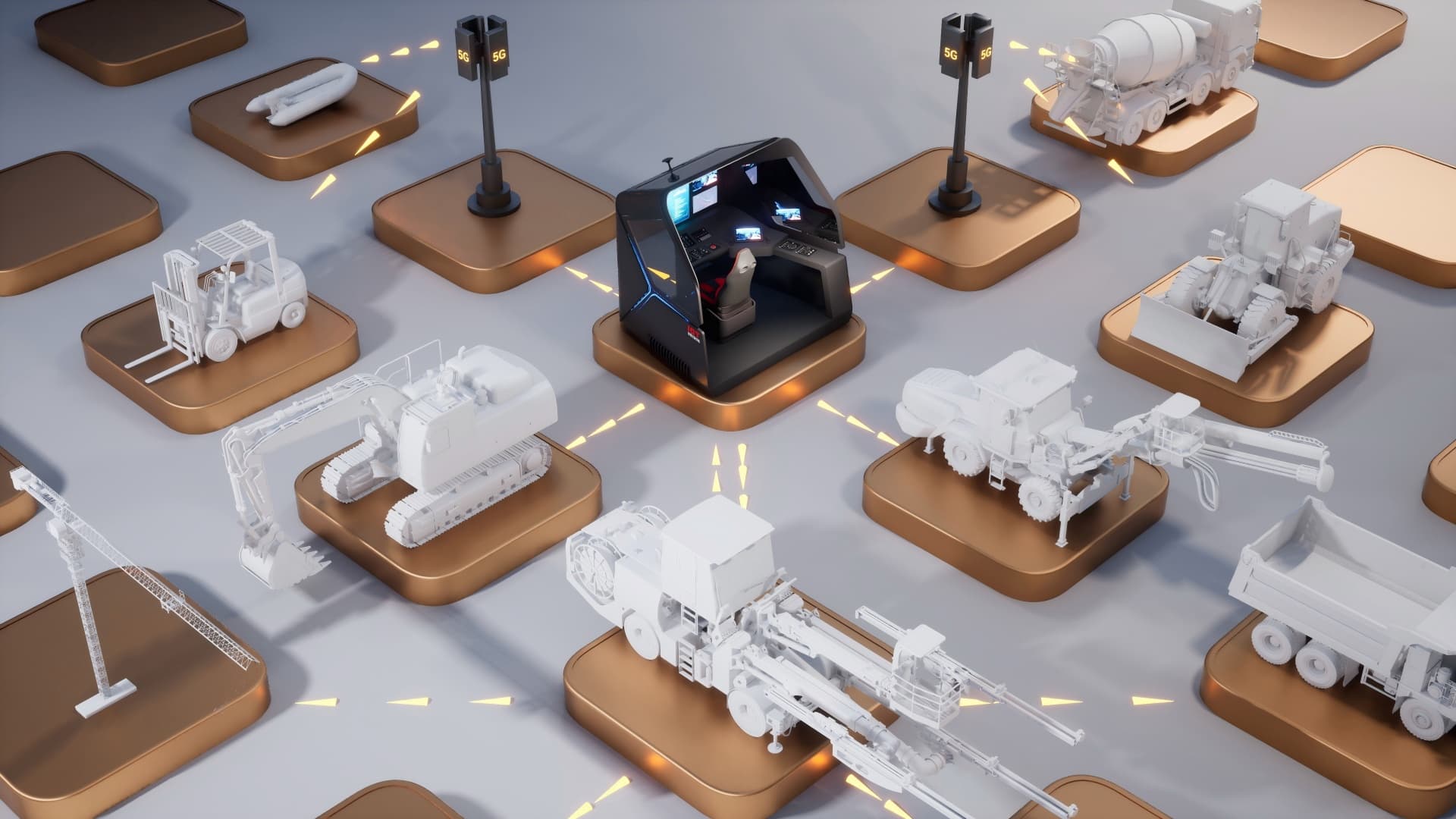 是一套面向大型工程機械裝備遠程操控的解決方案,集合三維仿真視景技術、智能全景視頻處理、虛擬仿真和基于人工智能的環境感知等先進技術。通過多個傳感器系統參數疊加在機械上,駕駛員可實時獲取準確的數據參考。該方案采用無線傳輸技術,可以傳輸多路視頻、傳感器數據和操控指令,并結合超低延時的視頻編解碼技術,實現對大型工程機械的精準遠程操控。數據信息可以通過無線方式傳輸到云端管理平臺,管理人員可隨時查看設備狀態。